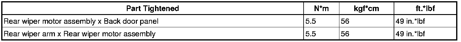 SPECIFICATIONS: WIPER / WASHER: TORQUE SPECIFICATIONS