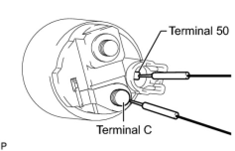(1) Disconnect the negative (-) terminal lead from terminal C with the condition specified in the pull-in test above being maintained. Check that the pinion gear remains out.