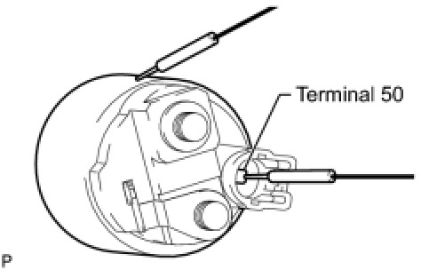 (1) Disconnect the negative (-) lead from the starter body. Check that the clutch pinion gear moves inward.