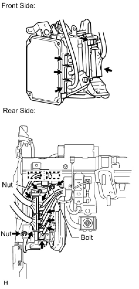 (1) Install the ECU with junction block with the bolt and 2 nuts.
