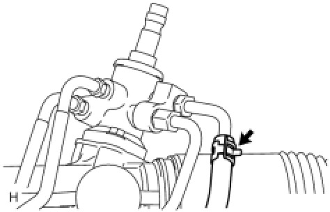 (b) Install the clamp and connect the pressure feed tube (return tube side) to the power steering link.
