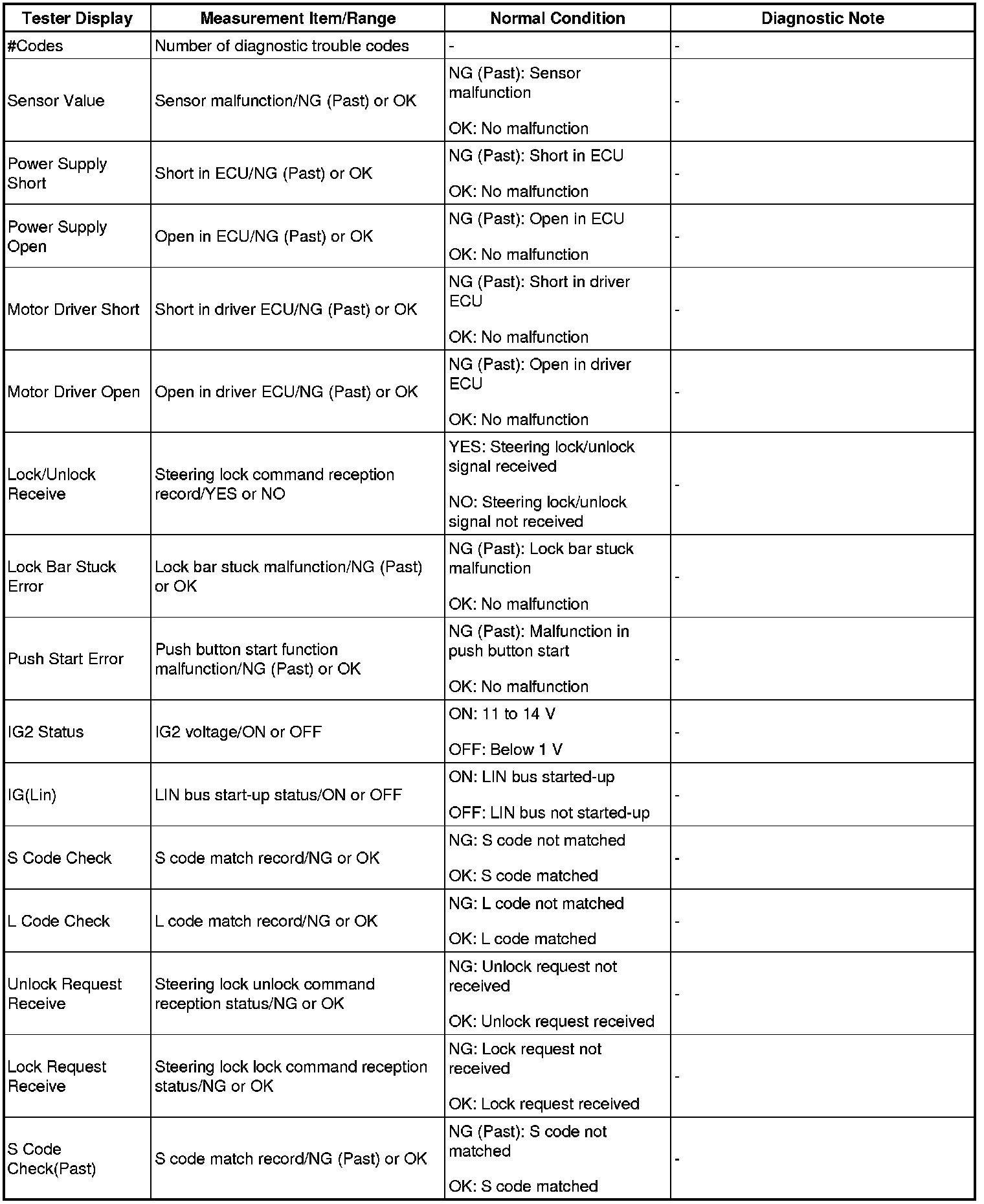 STEERING COLUMN: STEERING LOCK SYSTEM: DATA LIST / ACTIVE TEST