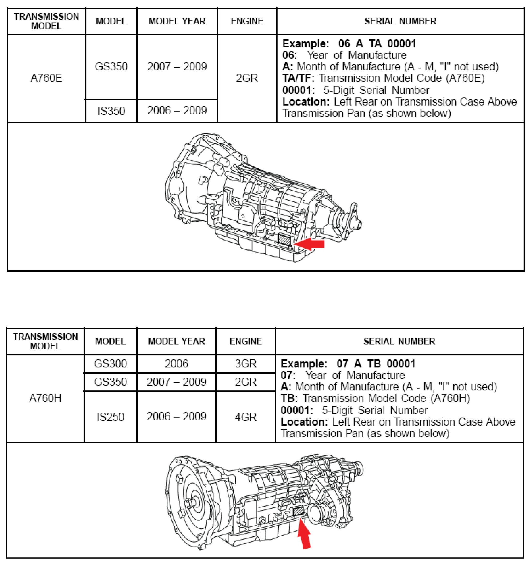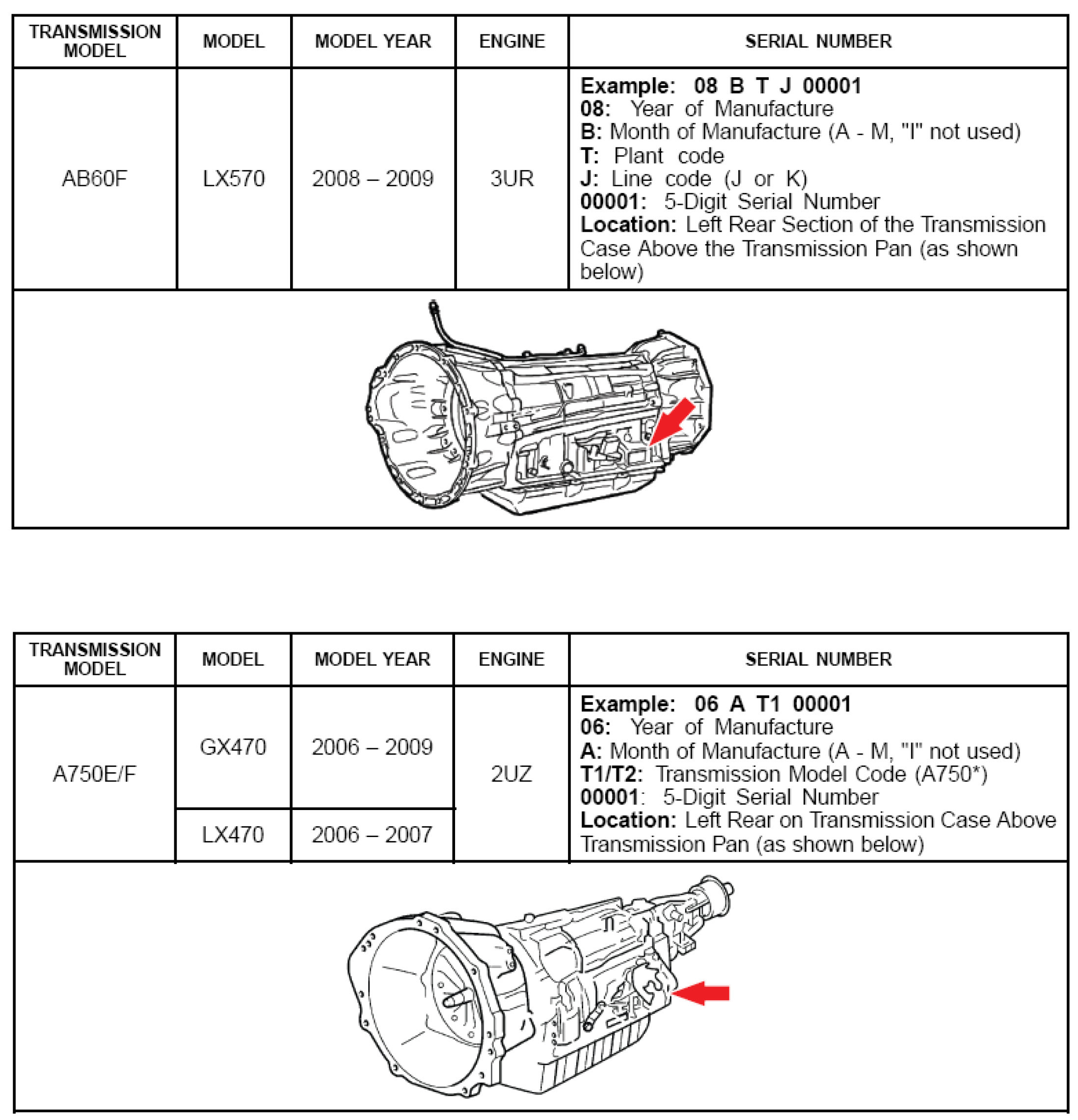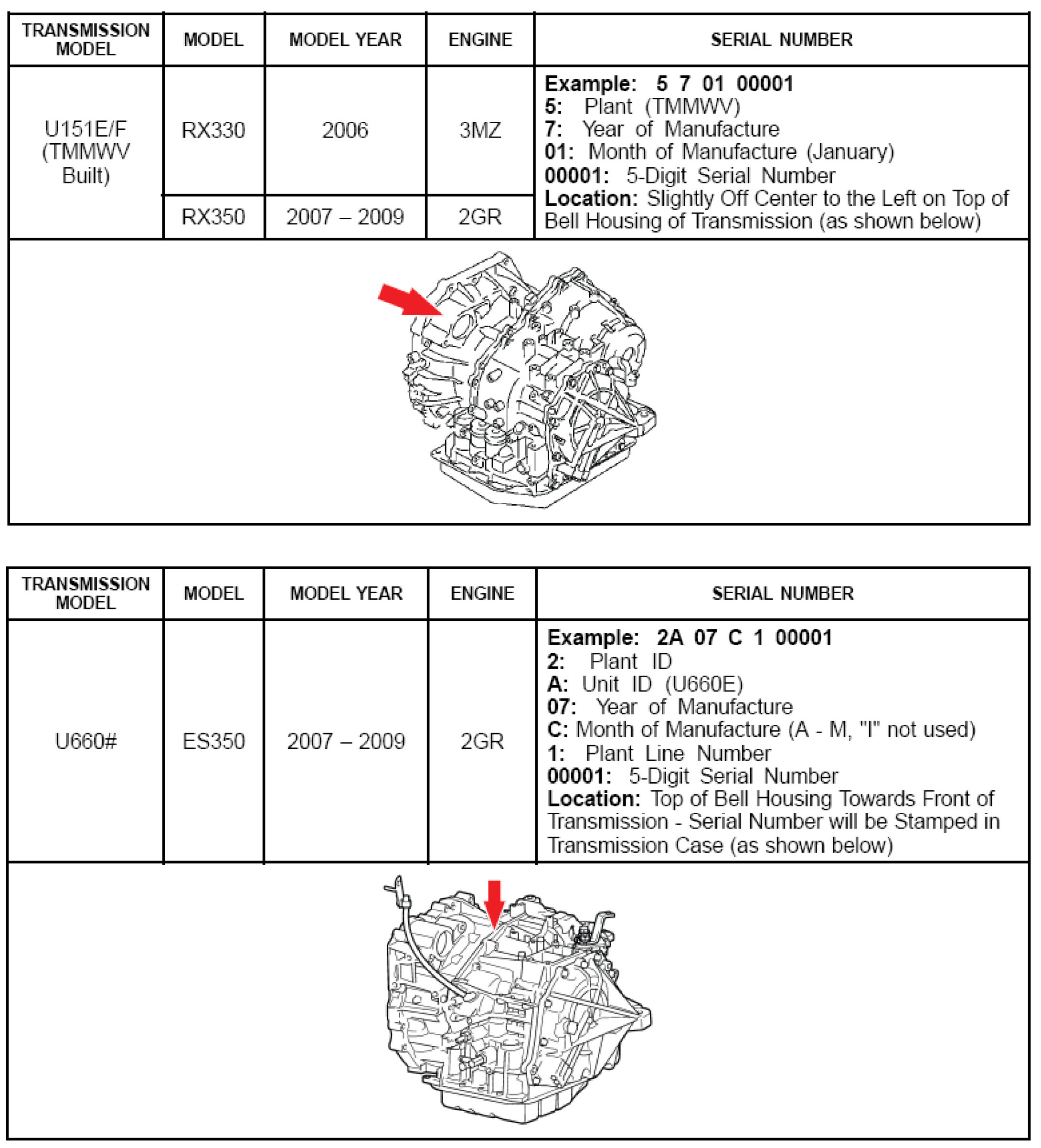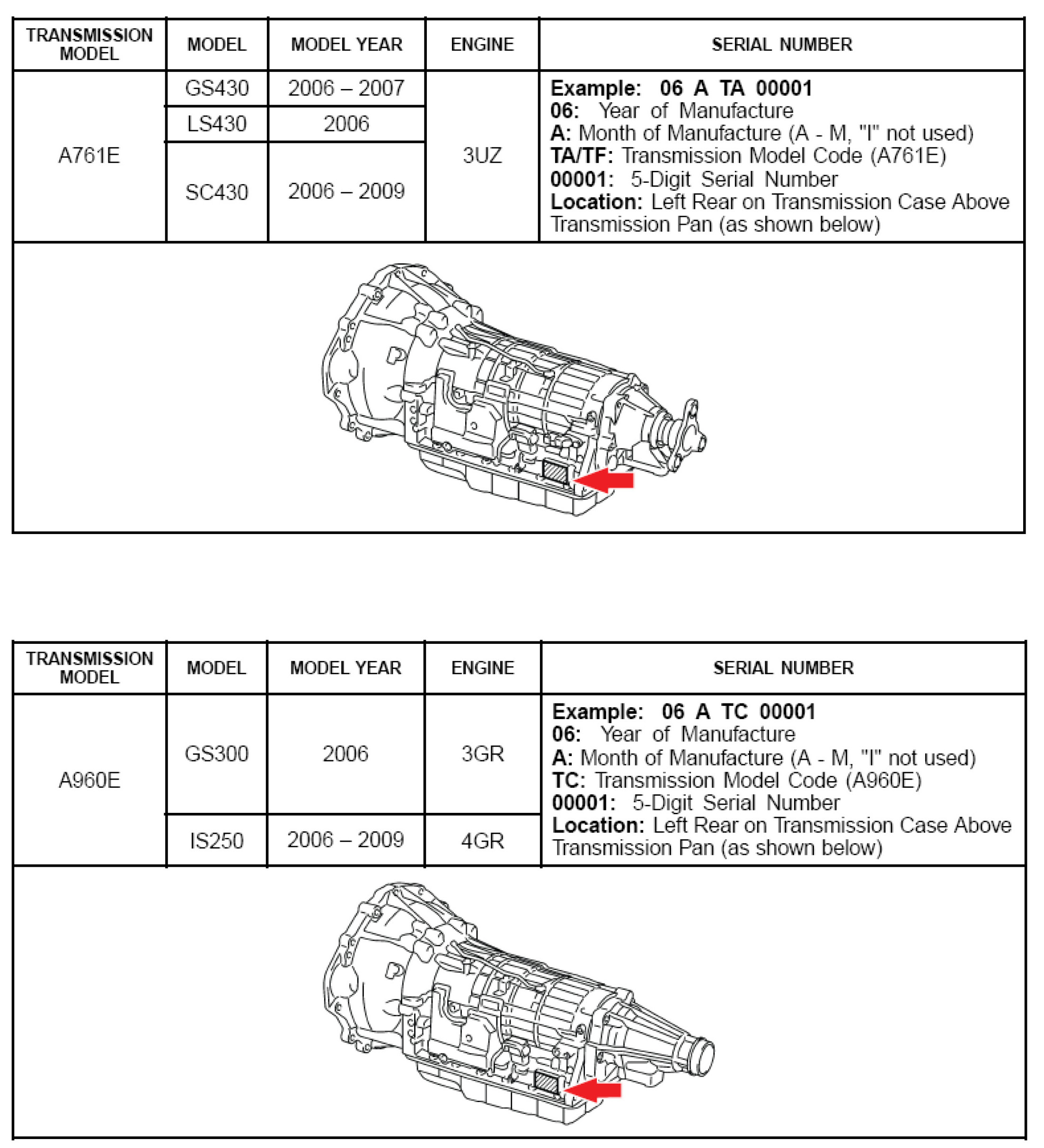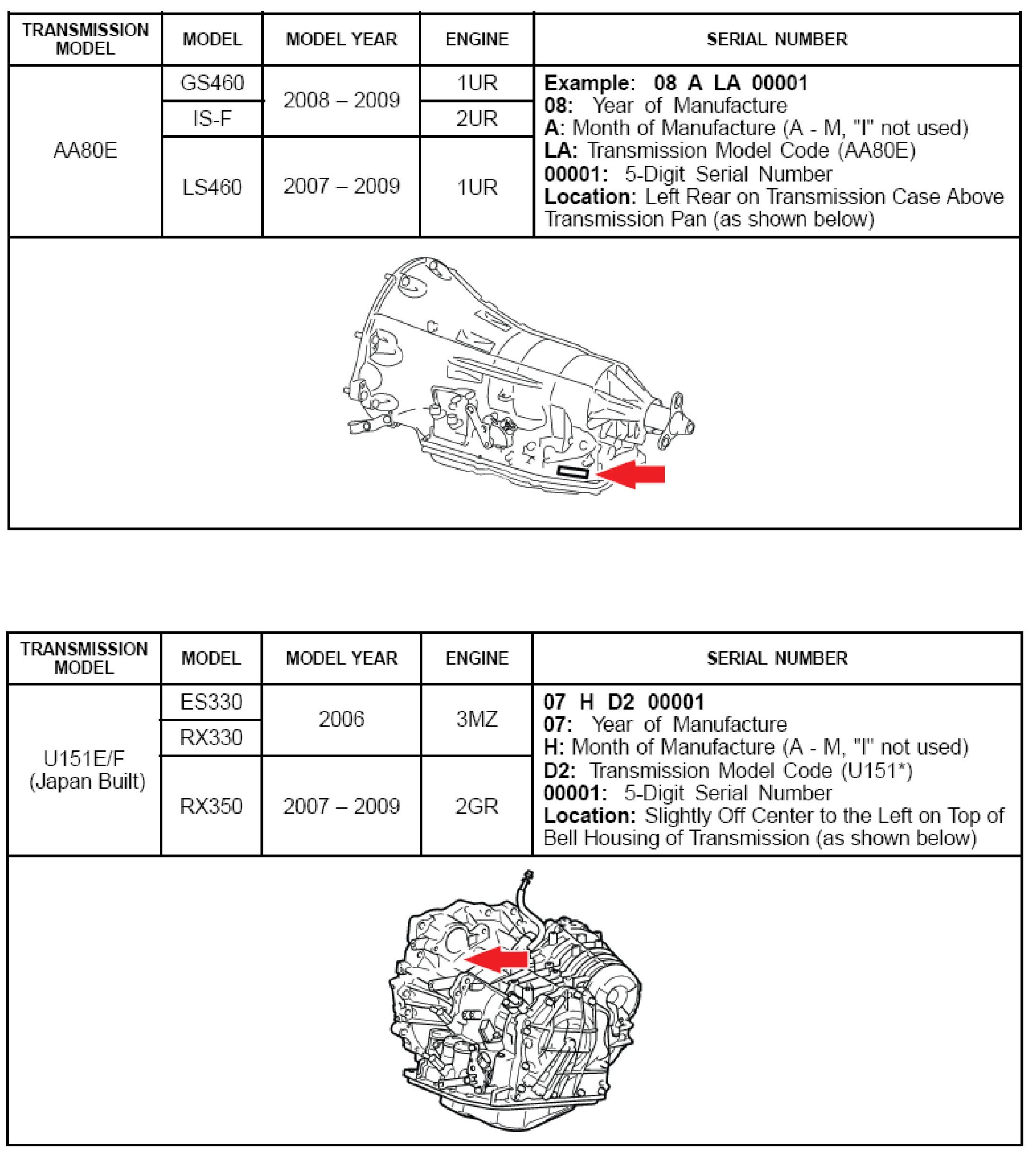 The purpose of this TSB is to assist in the identification and location of serial numbers on 2006 - 2009 model year automatic transmissions.