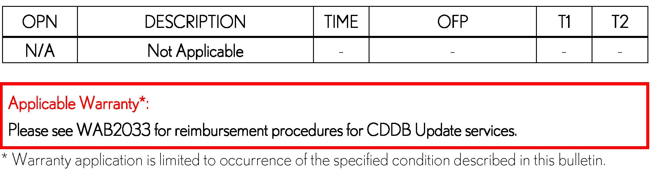 - For additional information on applicable reimbursements, please refer to WAB2033.
