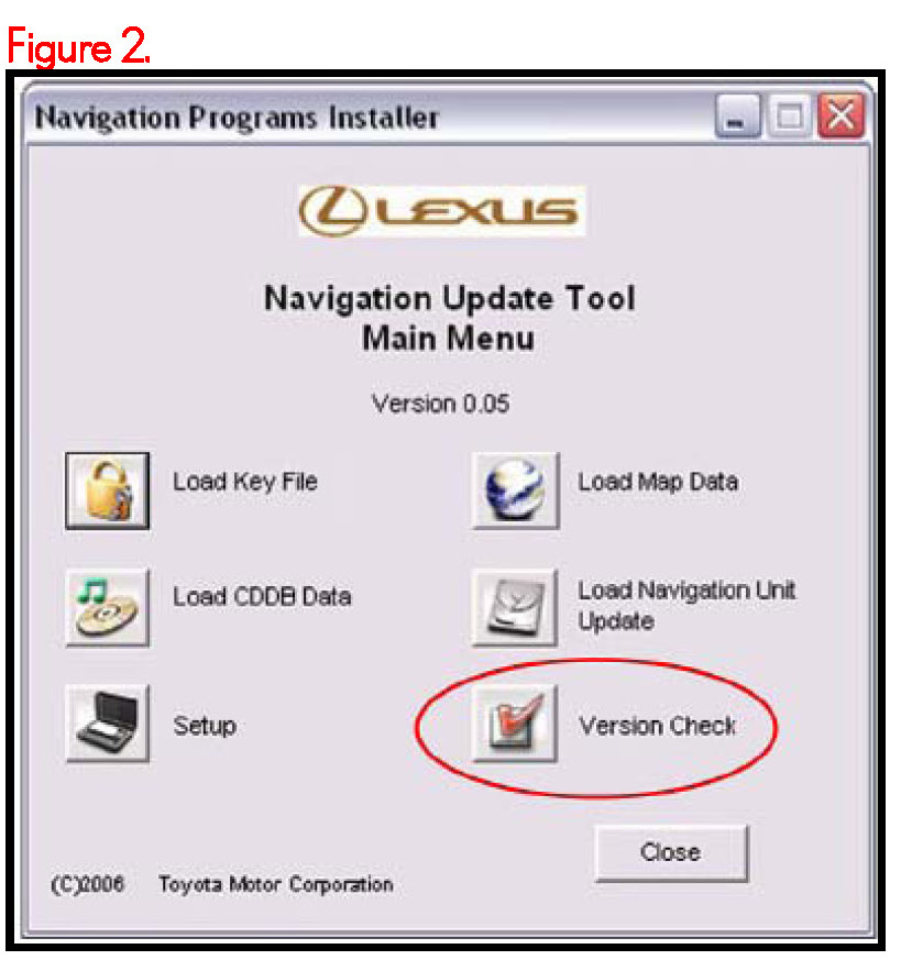 2. Click Version Check on the "Navigation Update Tool Main Menu".
