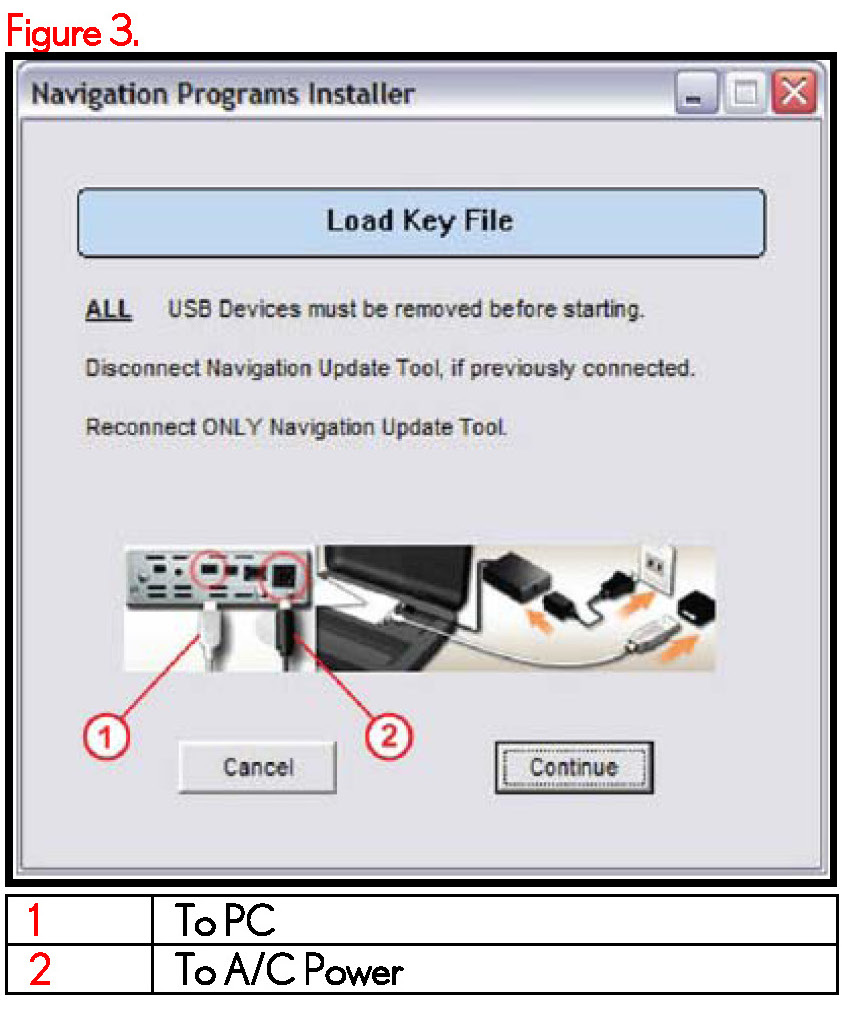 3. Connect the Navigation Update Tool and press Continue.