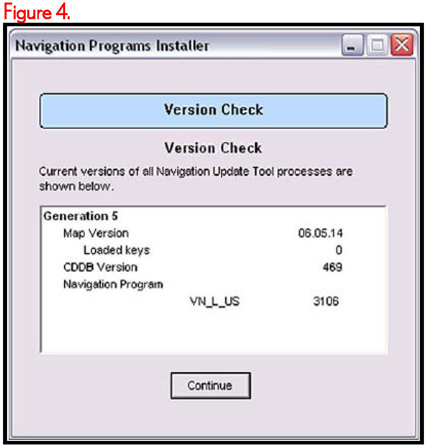 5. Connect the Navigation Update Tool and press Continue.