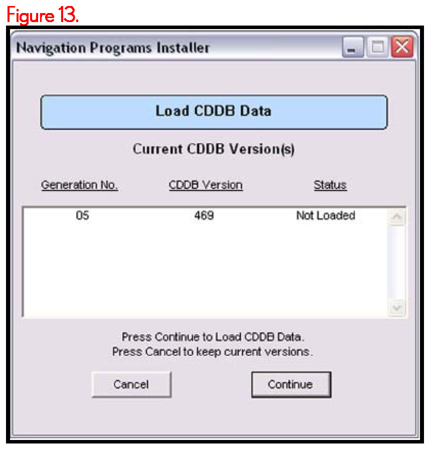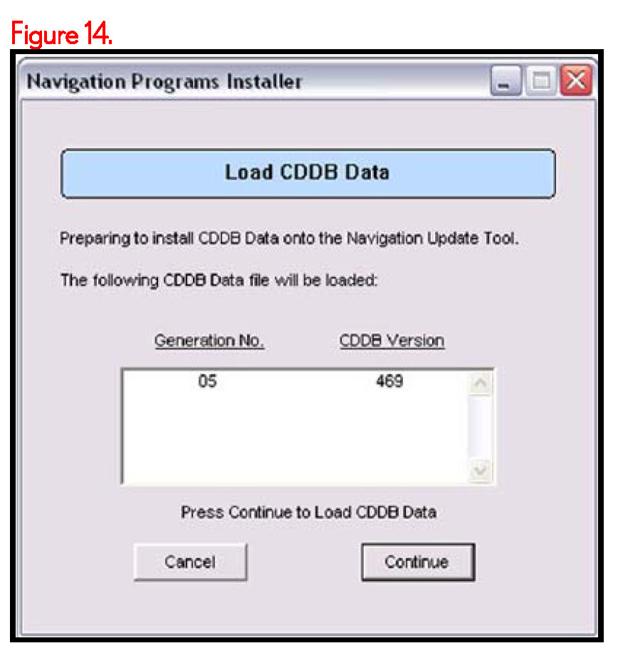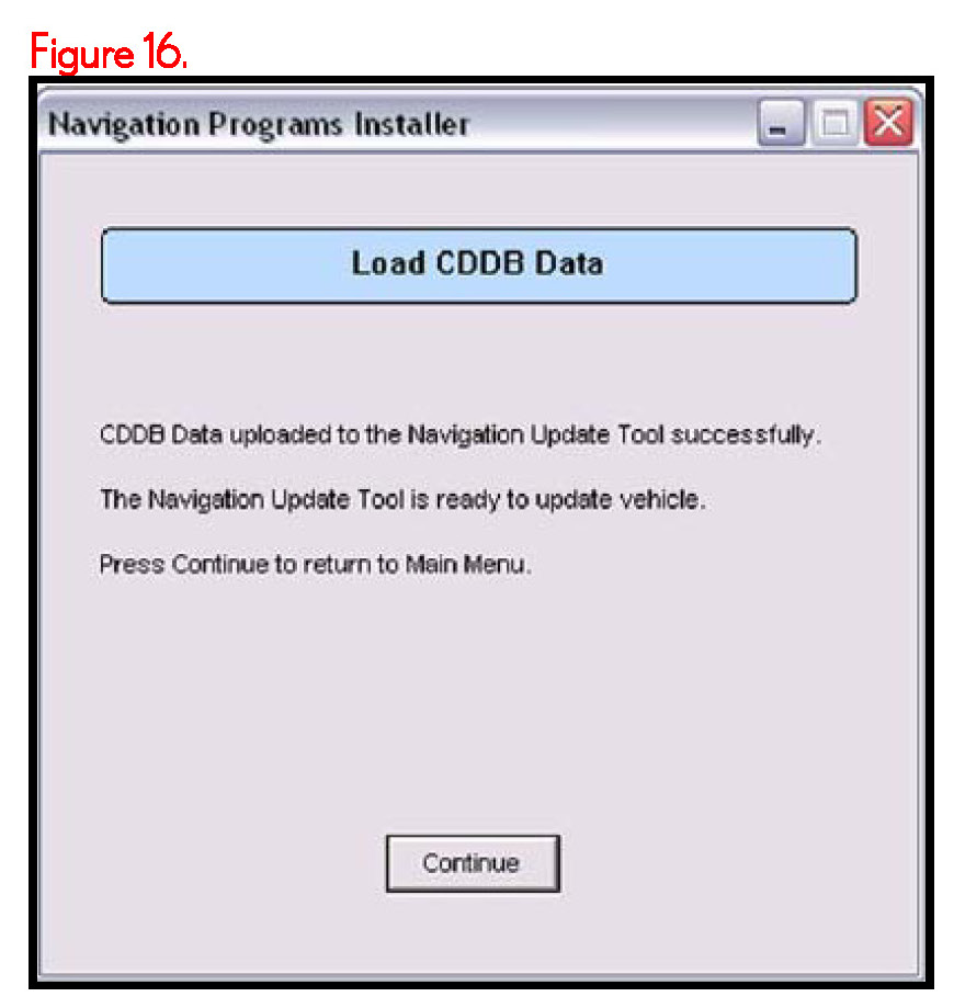 7. Click Continue to load CDDB data onto Navigation Update Tool.