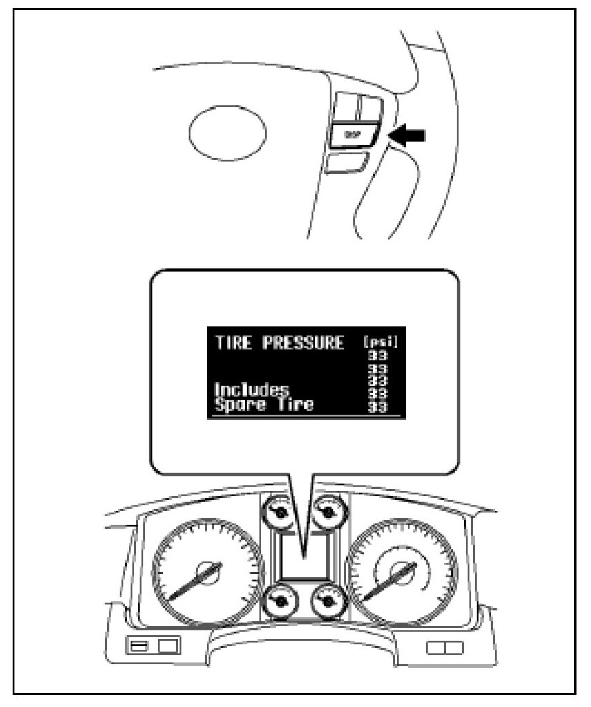 - If step 3 is performed and the tire pressures are still NOT displayed, lift the vehicle and turn each tire 90 to 270 degrees. Then repeat step 3.