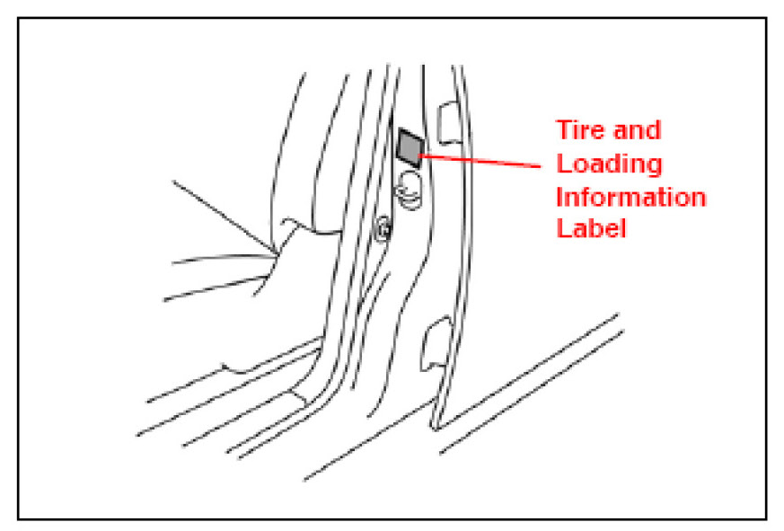 5. Adjust all tires (including the spare tire) to the standard tire inflation pressure, as indicated on the Tire and Loading Information Label located inside the driver's door jamb.