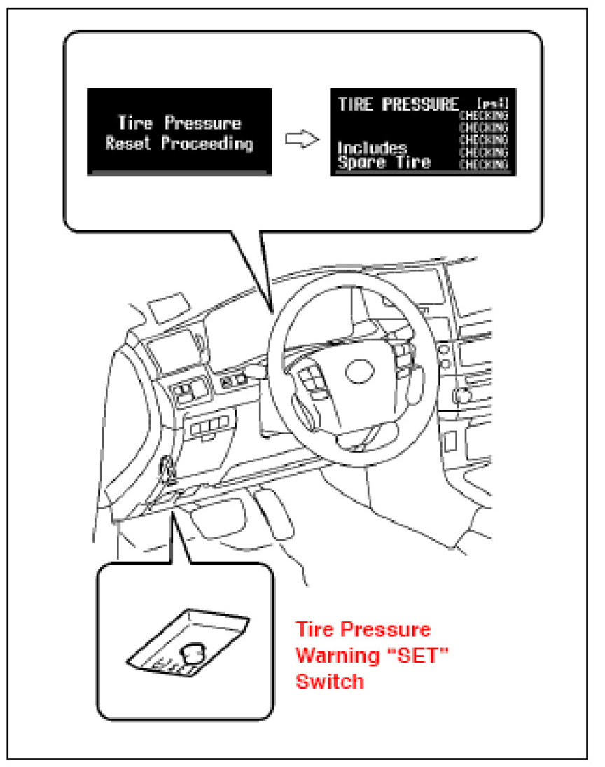 - Make sure that the "Tire Pressure Reset Proceeding" appears on the multi-information display. After a few seconds, the display changes to "CHECKING" (which means the tire pressures are being measured).