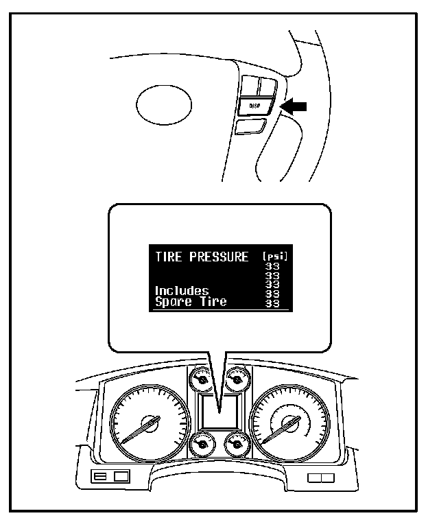 4. Press the "DISP" switch on the steering wheel and check that the tire pressures of all 5 tires are displayed on the multi-information display.