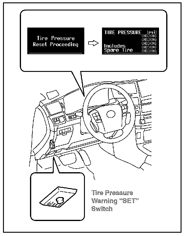 ^ Make sure that the "Tire Pressure Reset Proceeding" appears on the multi-information display. After a few seconds, the display changes to "CHECKING" (which means the tire pressures are being measured).