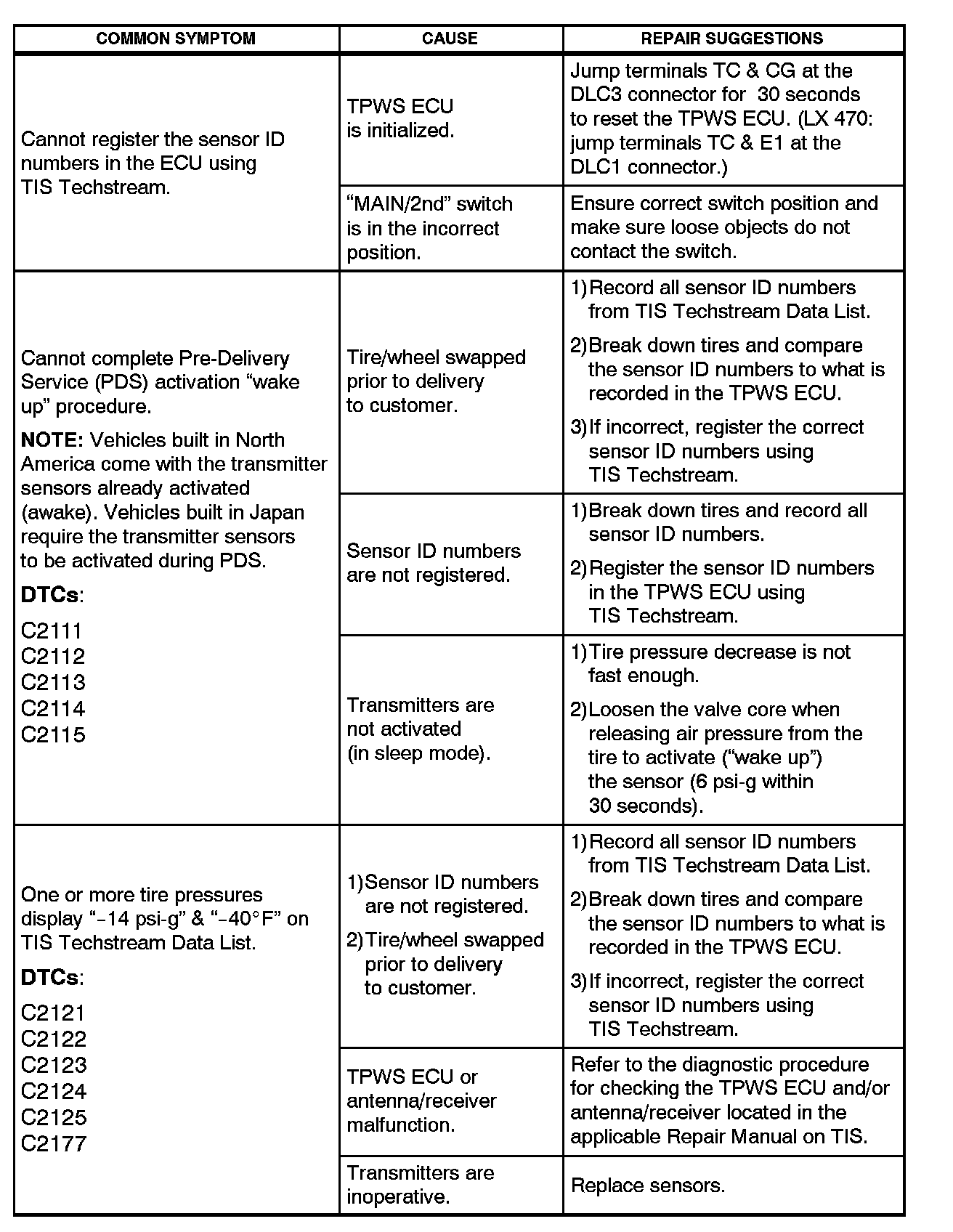 Tire Monitor System - Diagnostic Tips