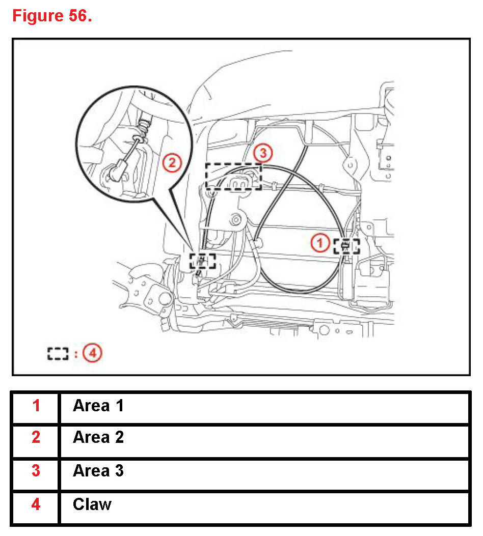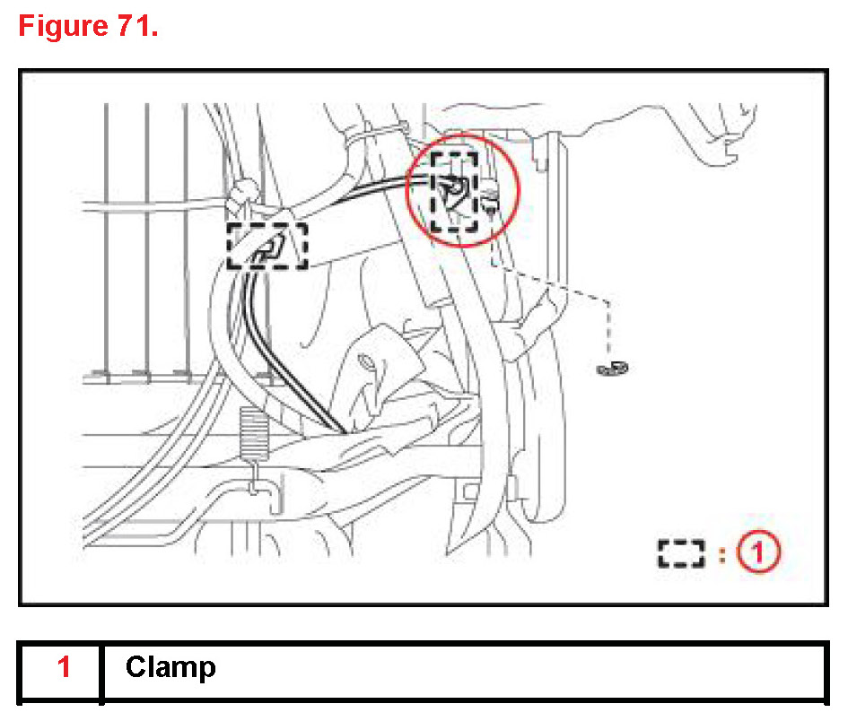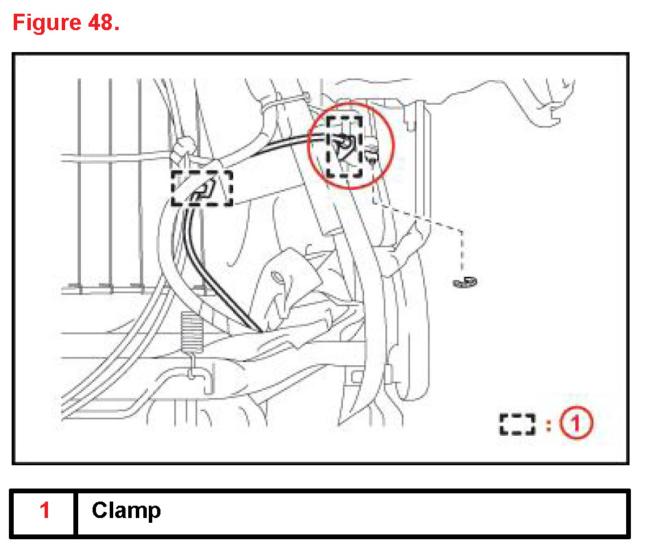 H. Attach cable clamp to cable and frame at area #3.