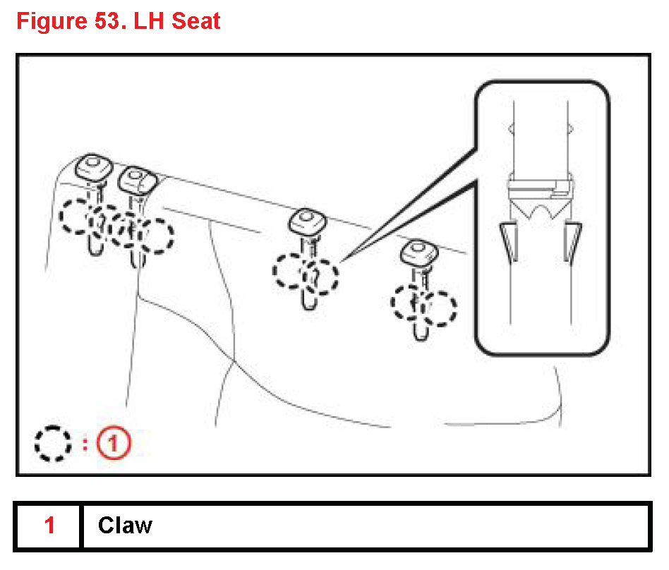 18. Attach the 4 claws to install 2 Seat Cushion Lock Covers.