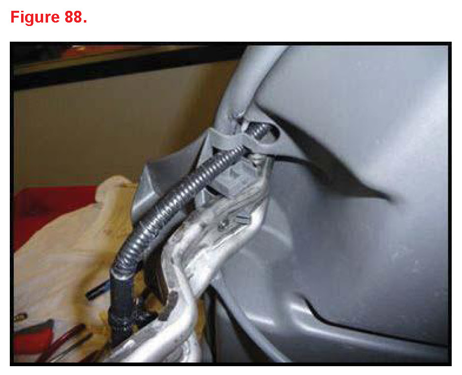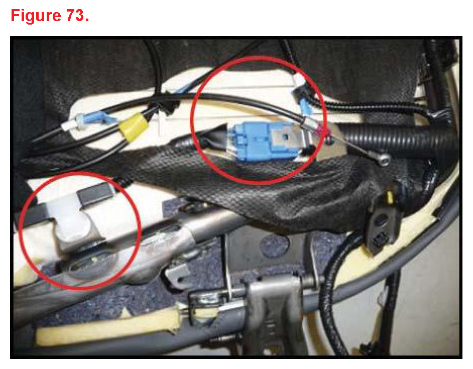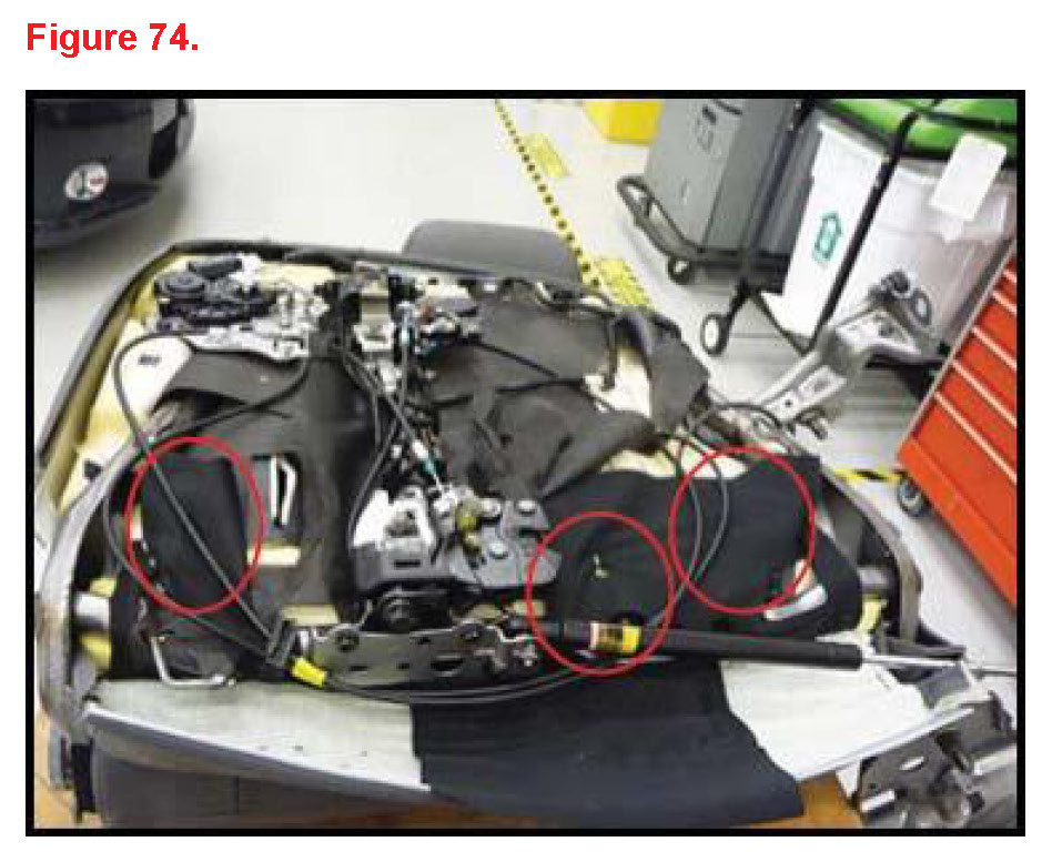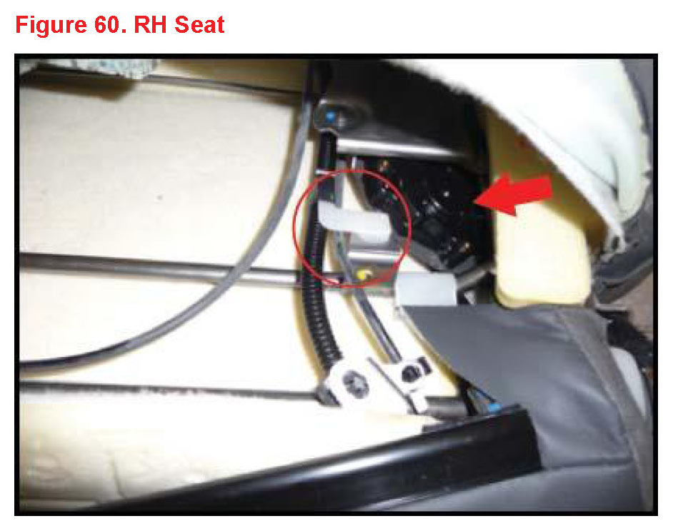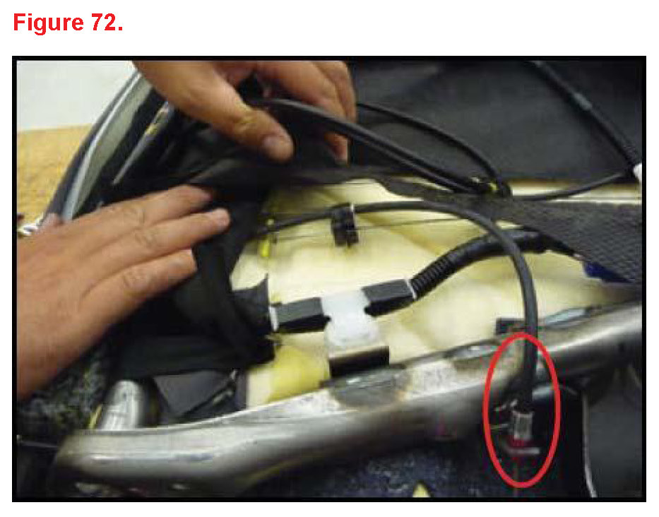 K. Insert cable and wire harness through seatback cover hole.