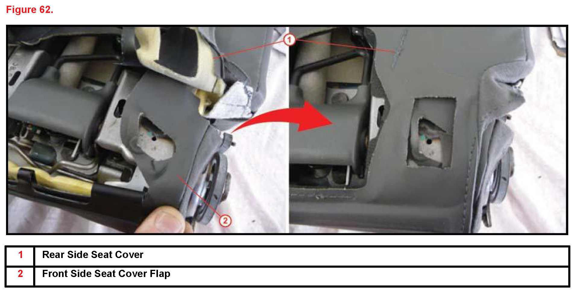 N. Set the front seat cover flap against seat frame then set rear seat cover on top of front flap.