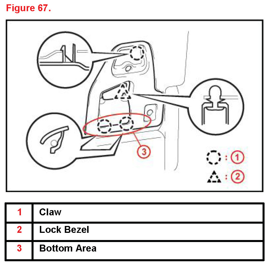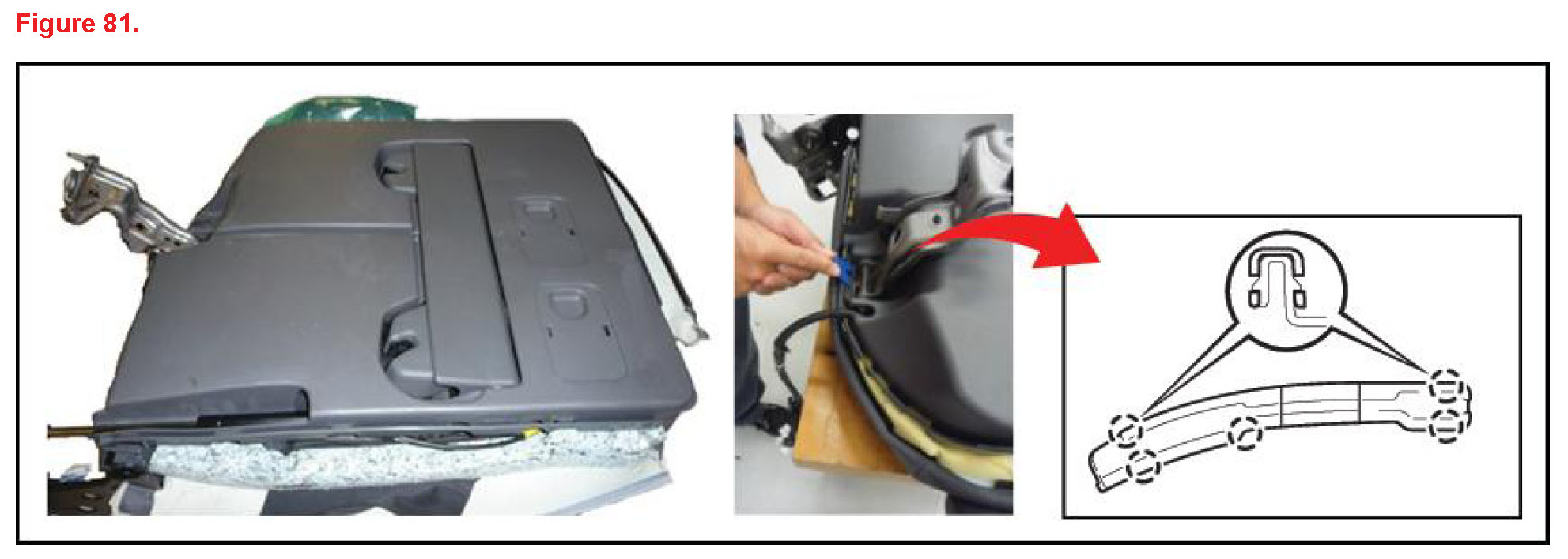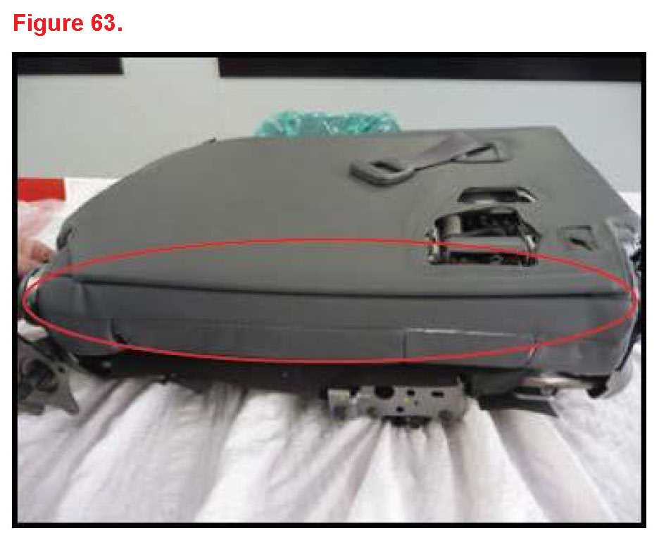 7. First insert bottom area claws, then push the bezel into the rear lower seatback.