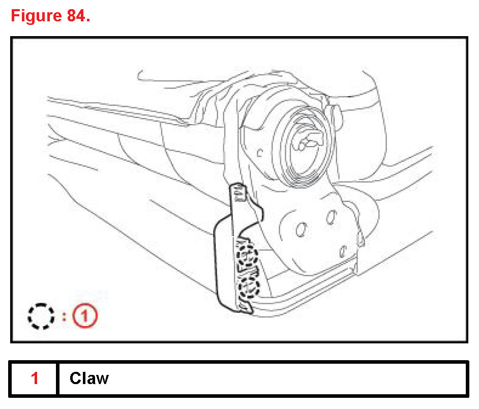 27. Attach the 2 claws and install the screw (silver). Install seat cushion cover.