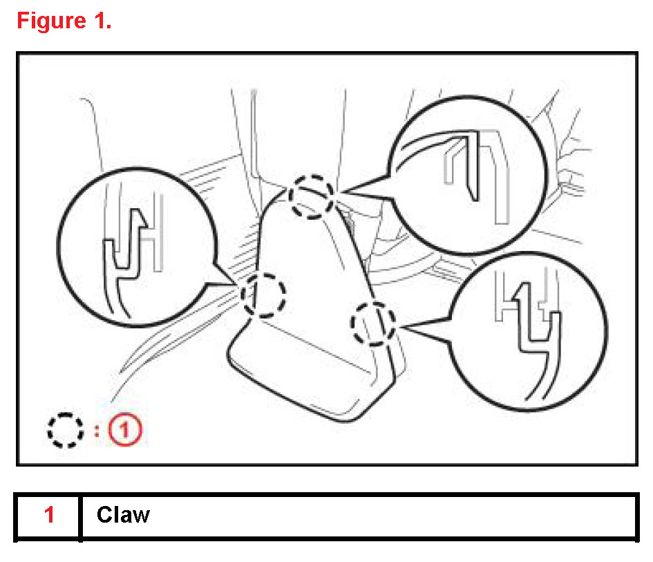 1. Using a plastic pry tool, detach the 3 claws and remove the seat hinge cushion cover.