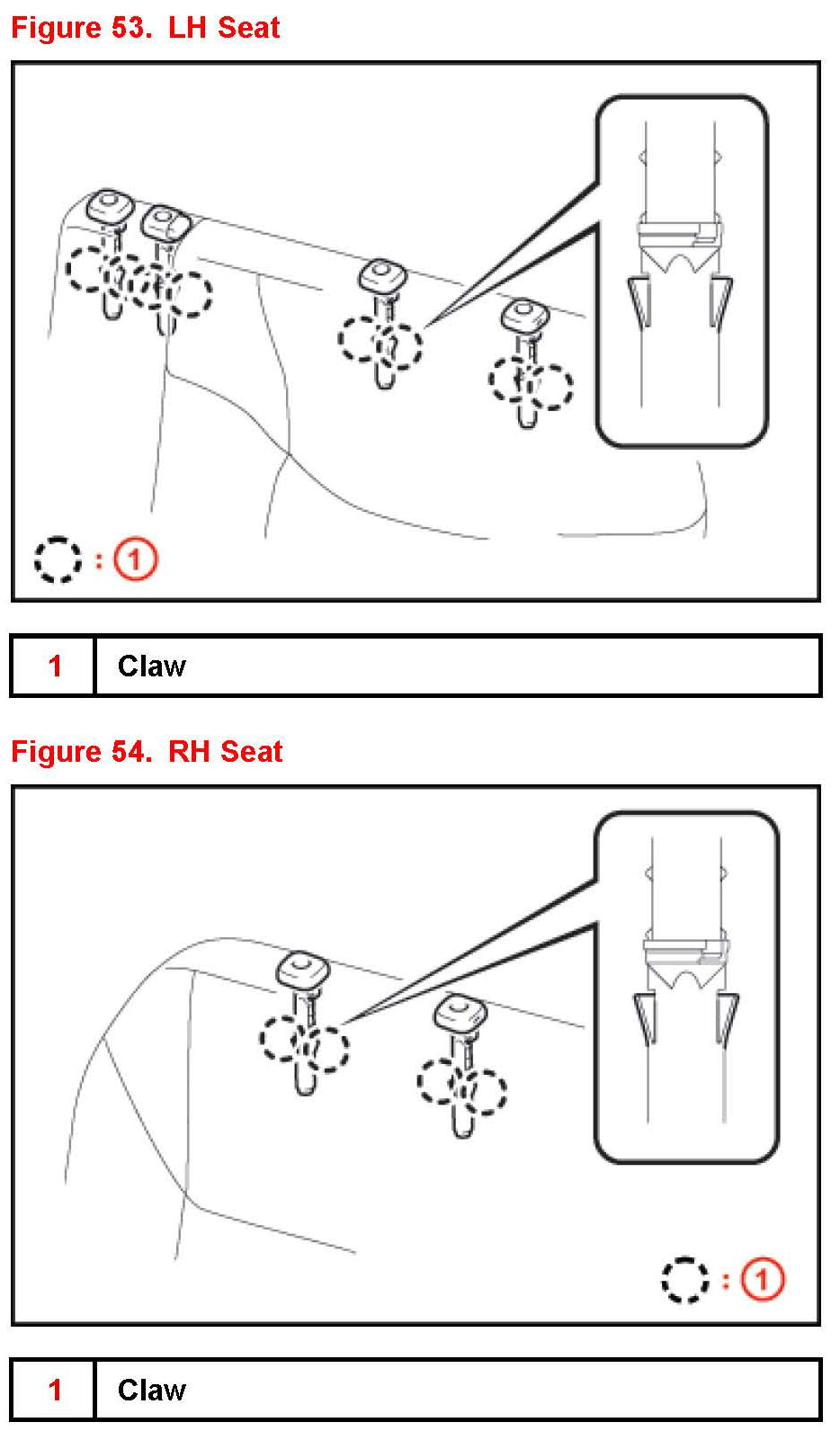 18. Attach the 4 claws to install 2 Seat Cushion Lock Covers.