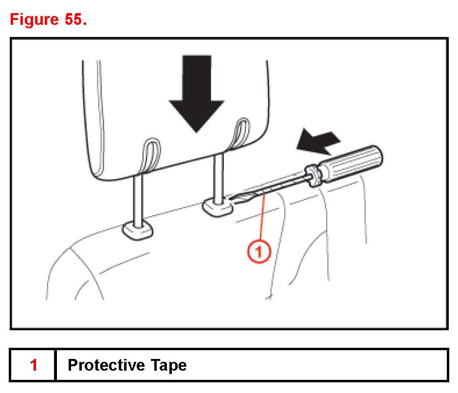 Use screwdriver to release lock and install headrest on center headrest.