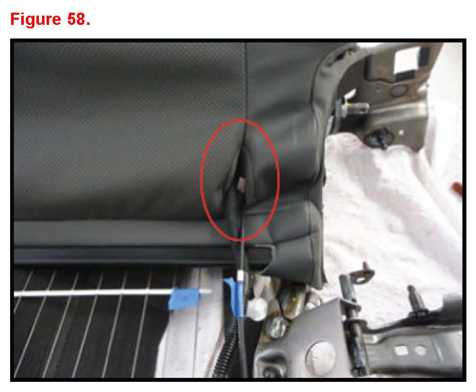K. Insert cable and wire harness through seatback cover hole.