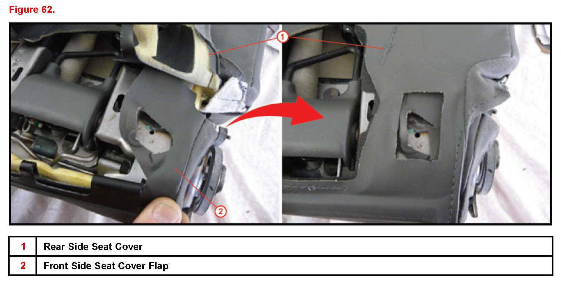 N. Set the front seat cover flap against seat frame then set rear seat cover on top of front flap.