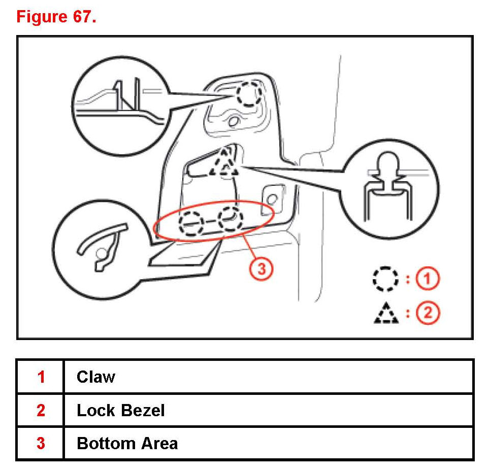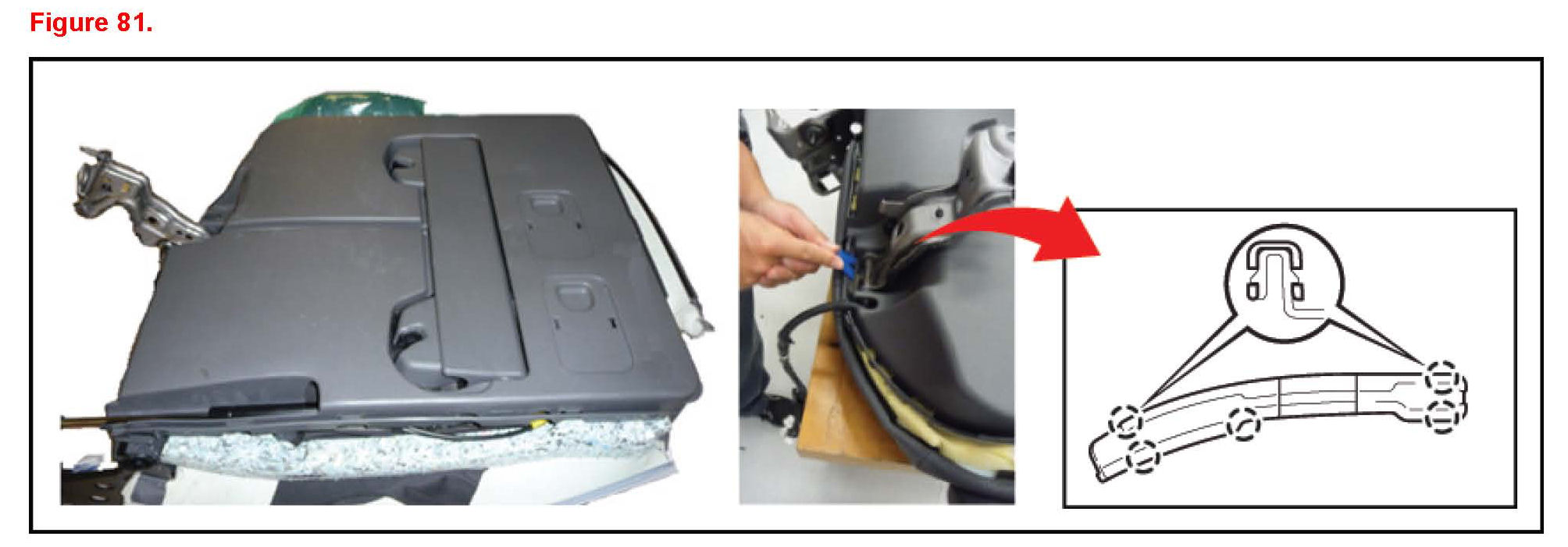 7. First insert bottom area claws then push the bezel into the rear lower seatback.