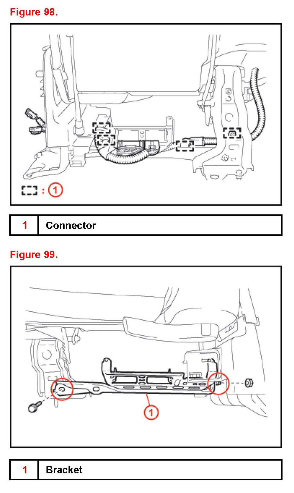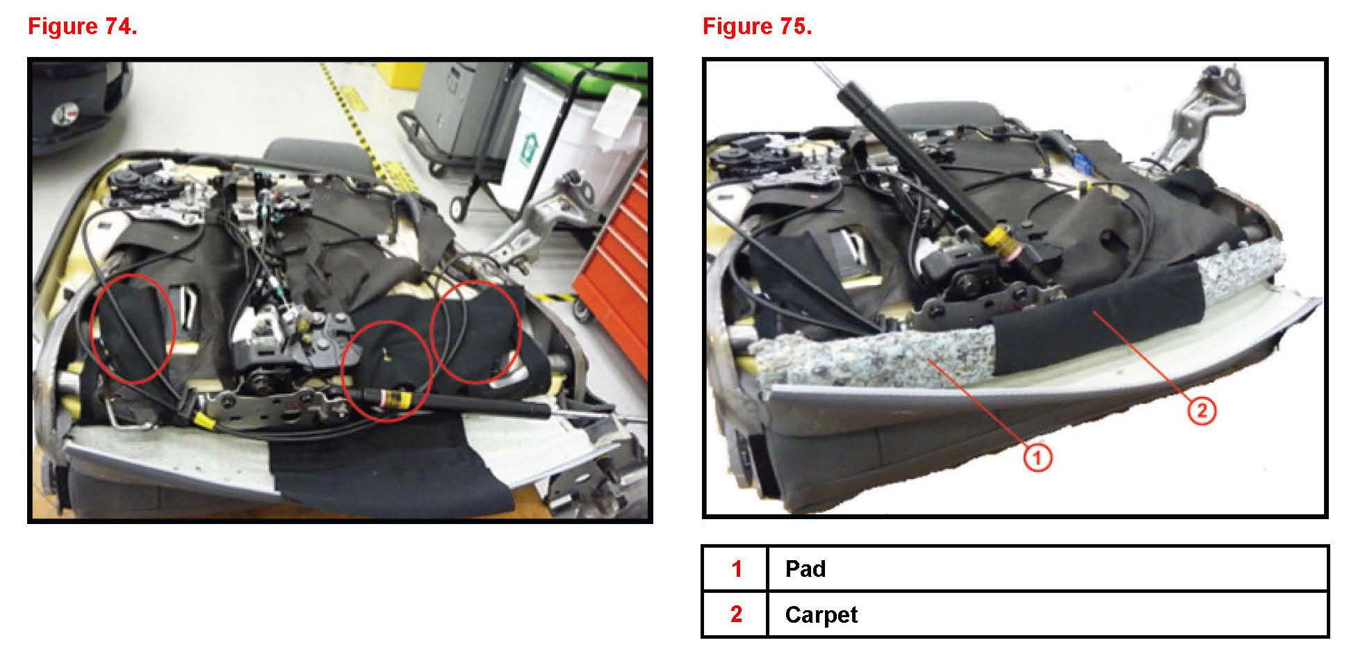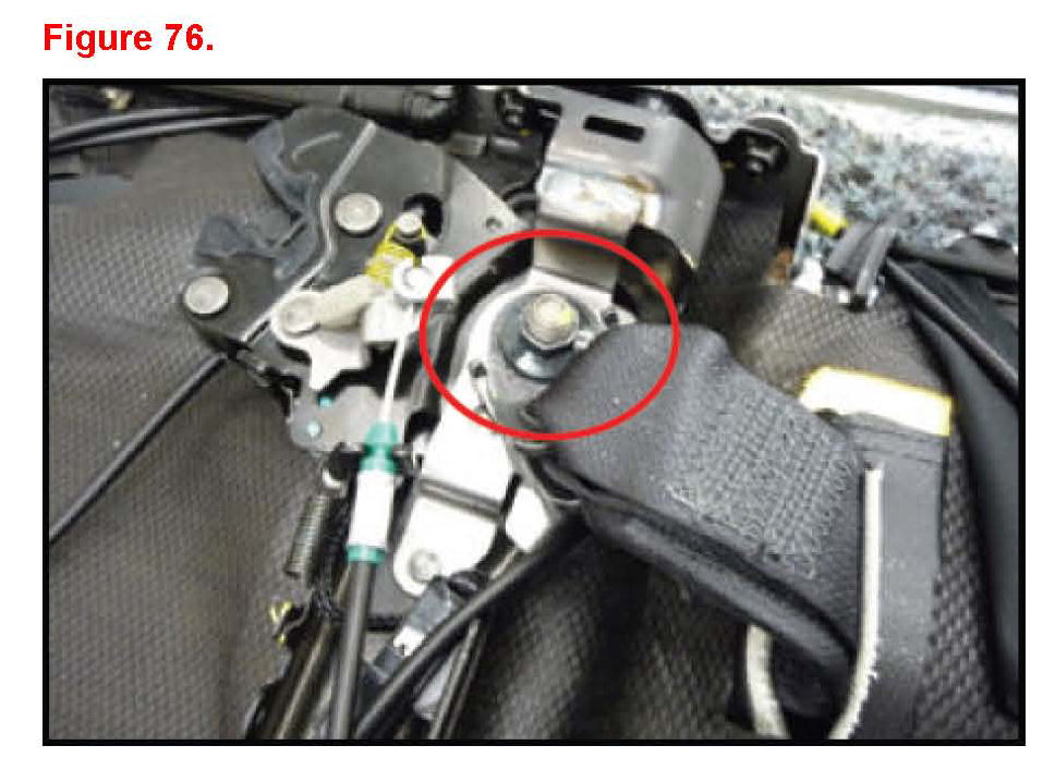 1. On new seat frame sub-assembly detach seat cable and wire harness.A. Remove the E-ring and detach clamp.