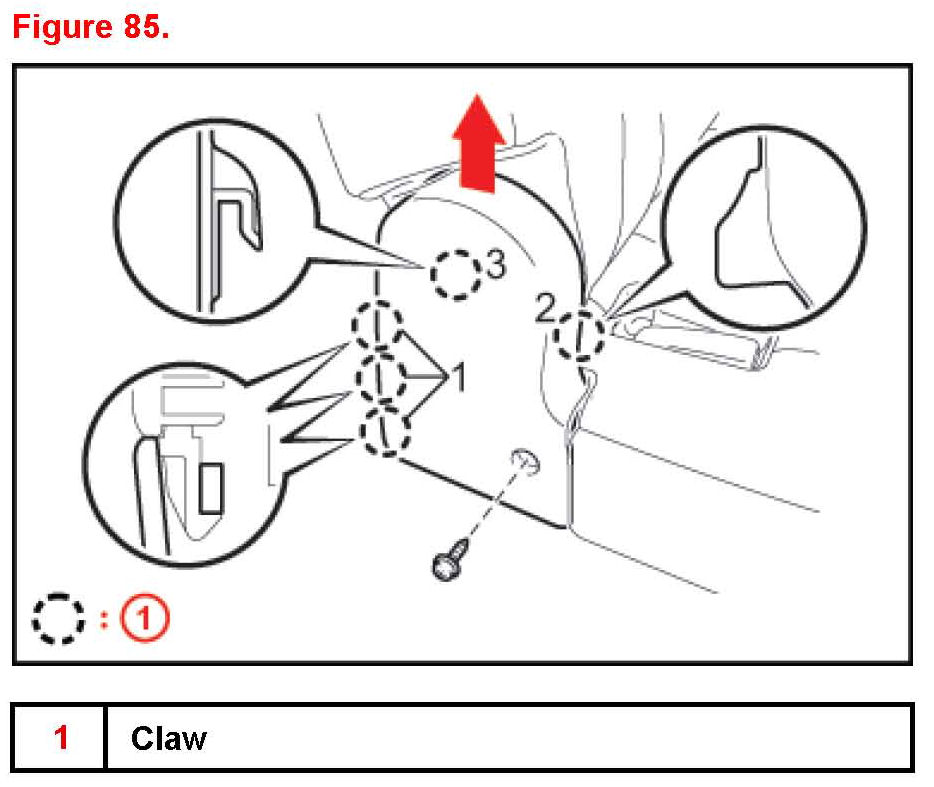 27. Attach the 2 claws and install the screw (silver). Install seat cushion cover.