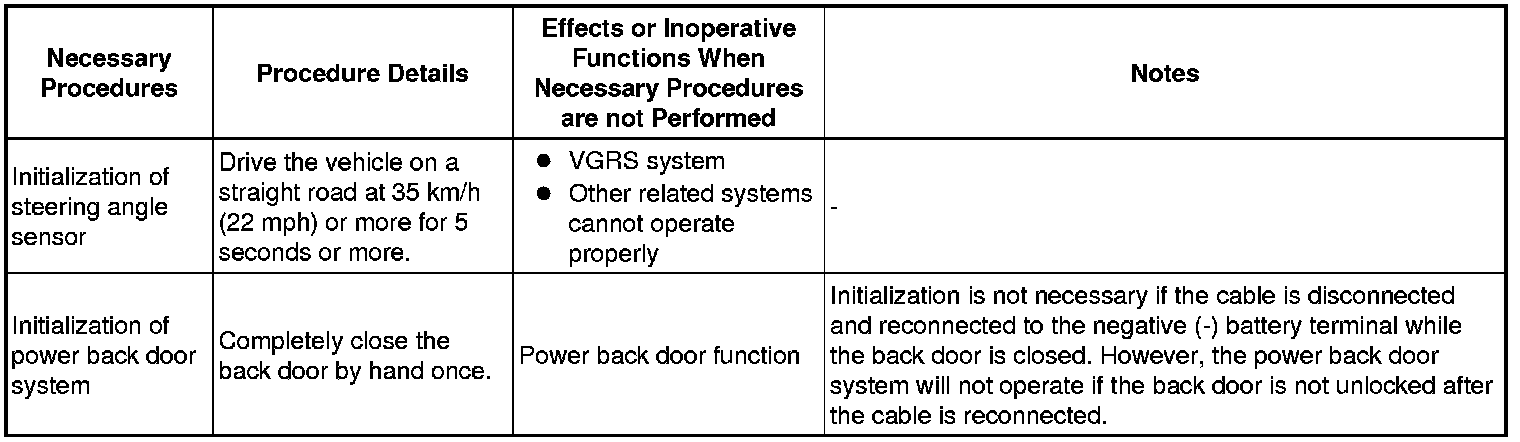 1. Procedures necessary when cable is disconnected/reconnected to battery terminal