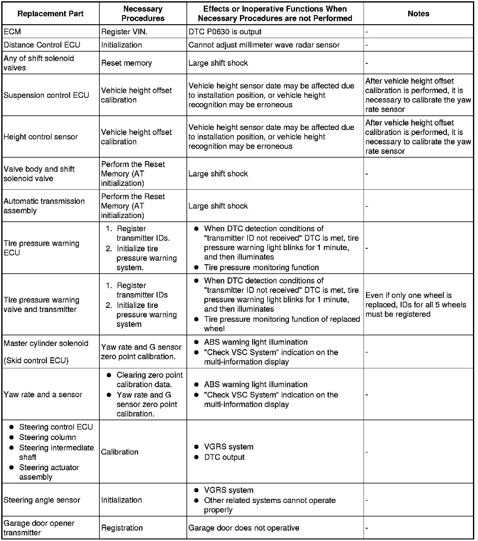 (1) If replacing the suspension control ECU and/or height control sensor, perform the vehicle height offset calibration.