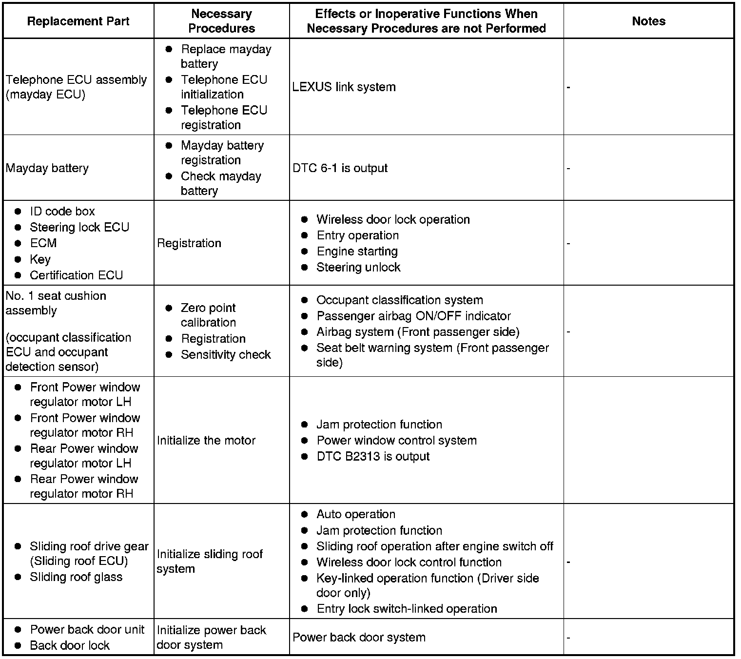 2. Procedures necessary when ECU or other parts are replaced