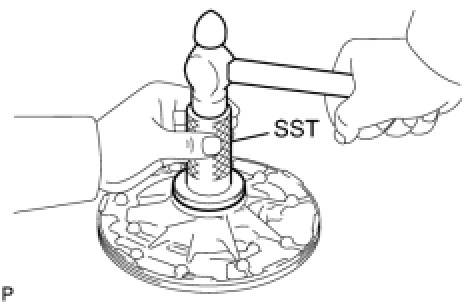 (a) Using SST and a hammer, tap in a new oil seal.