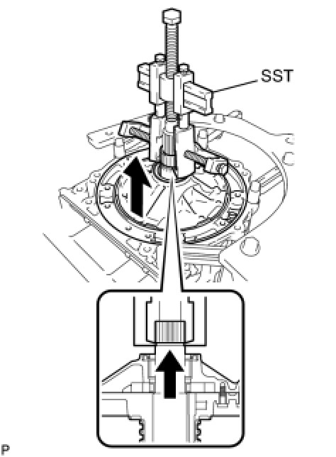 (b) Using SST and a press, press out the bearing.