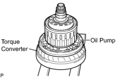 (a) Place the oil pump onto the torque converter clutch, and then place the clutch drum and input shaft assembly onto the oil pump.