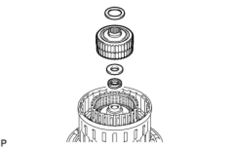 (b) Remove the clutch drum thrust washer and 2 thrust needle roller bearings.