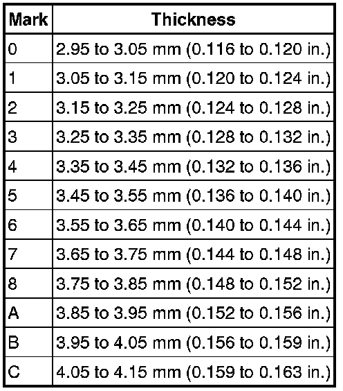 0.85 to 1.15 mm (0.0335 to 0.0453 in.)