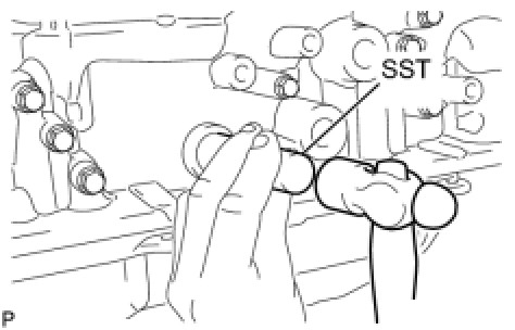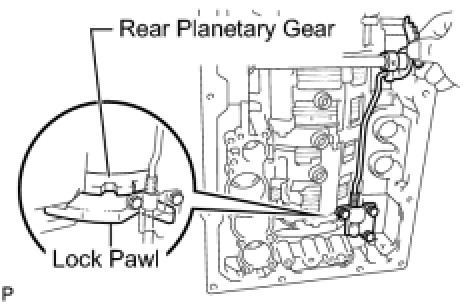 (b) Move the manual valve lever to the P position, and confirm that the planetary ring gear is correctly locked by the lock pawl.