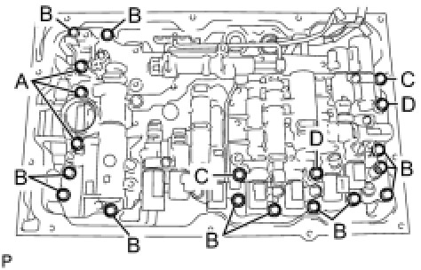 (c) Temporarily install bolt A. Install the bolts labeled B and tighten them to the specified torque. Then tighten bolt A to the specified torque.