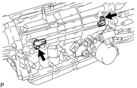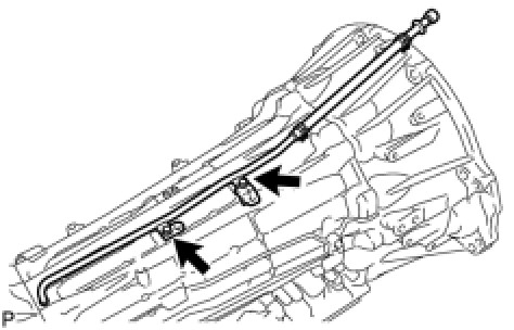 (e) Connect the 2 ATF temperature sensors with the 2 clamps and 2 bolts.
