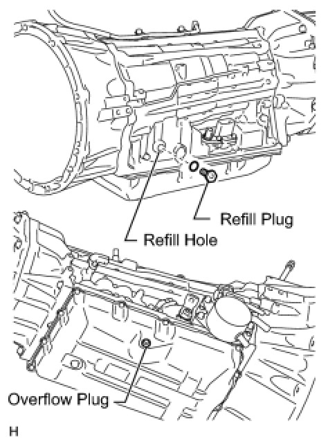(6) Remove the refill plug and add fluid.