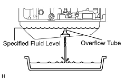 (b) Fill the transmission through the refill hole until fluid begins to trickle out of the overflow tube.