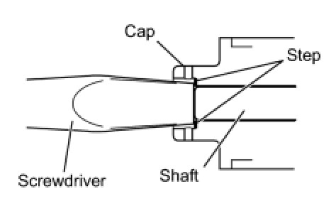 - Push the shaft until the screwdriver contacts the inside step of the cap.