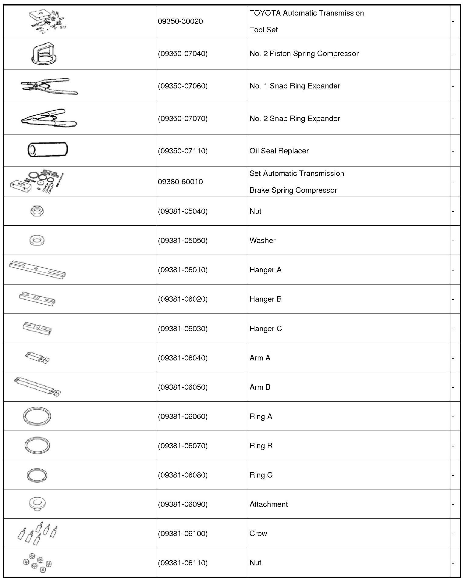 PREPARATION: AB60F AUTOMATIC TRANSMISSION / TRANSAXLE: SST
