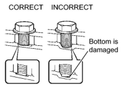 (1) When any marks due to interference are found on the end of the bolt for the torque converter clutch and on the bottom of the bolt hole, replace the bolt and torque converter clutch.