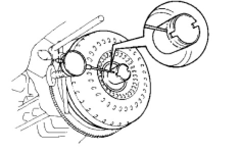 (1) Press on the serrations of the starter with a finger and rotate it. Check that it rotates smoothly when turned clockwise and locks when turned counterclockwise.