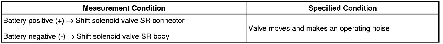 (b) Apply 12 V battery voltage to the shift solenoid valve and check that the valve moves and makes an operating noise.